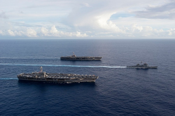 10月4日美兩支航母編隊靠近東亞地區,研判與釣魚台情勢有關