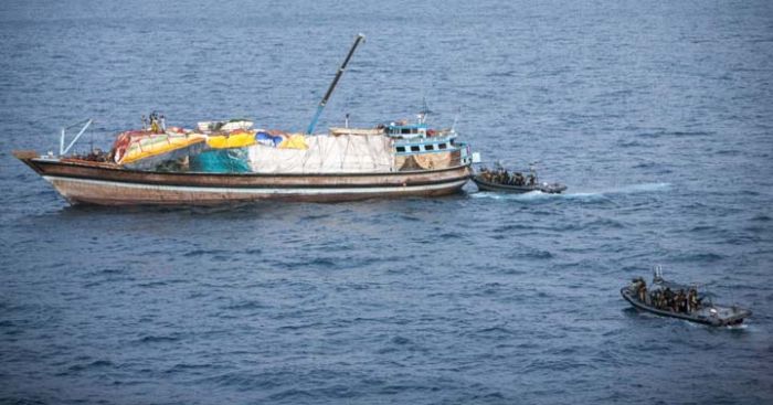 當地時間2012年10月26日,正在索馬利亞海域執行護航任務的荷蘭皇家海軍「鹿特丹」號船塢登陸艦在行駛途中遭到一艘海盜的獨桅帆船的襲擊。當兩船靠近時,帆船上的海盜用步槍向軍艦掃射。鹿特丹號登陸艦立即開火還擊,在激烈的交火中海盜船中彈起火,船上其餘海盜跳海逃生,鹿特丹號登陸艦迅速派出快艇將跳海的海盜活捉。鹿特丹號登陸艦是本次北約「海洋之盾」反海盜任務的旗艦。