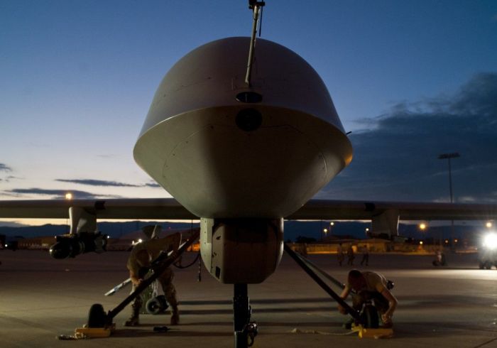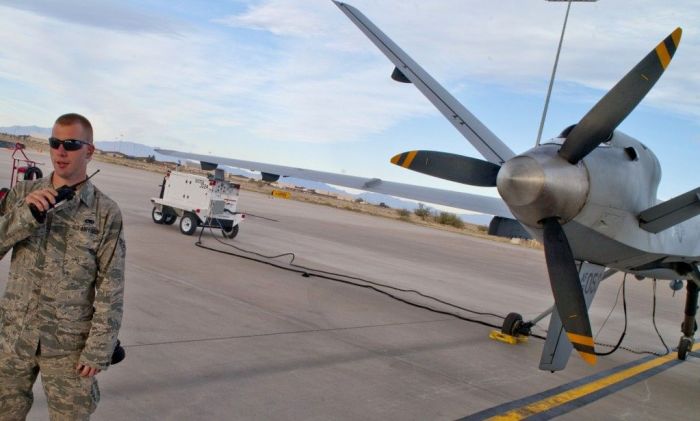 美國霍洛曼空軍基地第849飛機維護中隊正在對捕食者無人攻擊機進行任務前準備作業。該部隊任務比較繁重,必須24小時待命,以確保MQ-1「捕食者」和MQ-9收割者無人機隨時出動作戰。