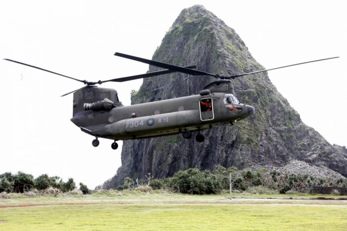 隨後在地面機工長的手勢引導下,一架架直昇機緩緩滑過停機坪,依序進入跑道,等待塔台航管通知待命起飛。