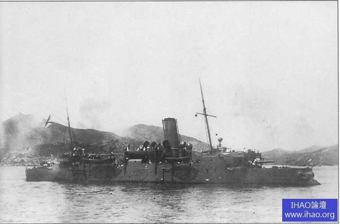 第一太平洋艦隊的列特維贊號戰列艦,美國造,日俄戰爭中俄羅斯綜合性能最好的戰艦,這是俄國人第一次在外國建造的戰艦。此時已被日軍岸炮擊中坐沉。