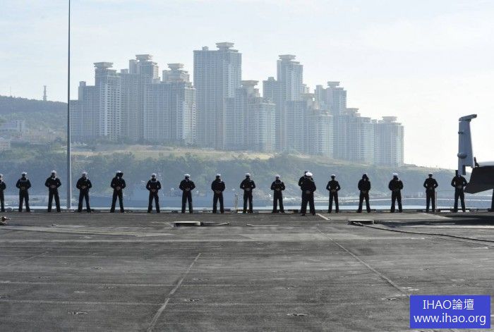 「尼米茲」號航空母艦戰鬥群5月11日駛入南韓釜山港準備參加13日的聯合演習