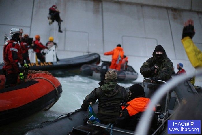 俄羅斯邊防部門接到報告,迅速調集周邊船艇前往驅逐,俄羅斯武裝拖船鳴炮示警,俄羅斯軍人駕快艇衝撞示威者,並用手槍和短刀威脅綠色和平組織示威者 .......