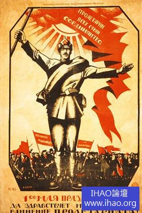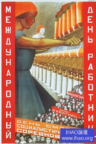 慶祝五一勞動節的一幅海報,海報上的俄文意為“勞動者5月的第一個假期”。