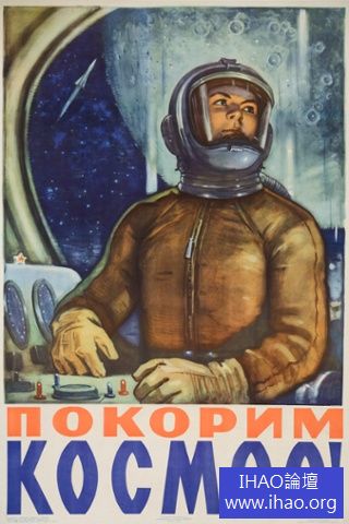 1960年宣傳太空與航空軍事的海報,海報上的俄文意為“征服太空”。