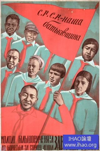 一幅名為“為列寧的偉大事業奮鬥的青少年”的海報,展示了蘇聯各民族的青少年。