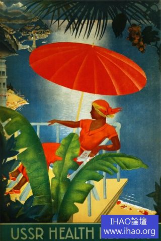 蘇聯旅遊業部門宣傳敖德薩的海報。敖德薩是烏克蘭的重要港口。