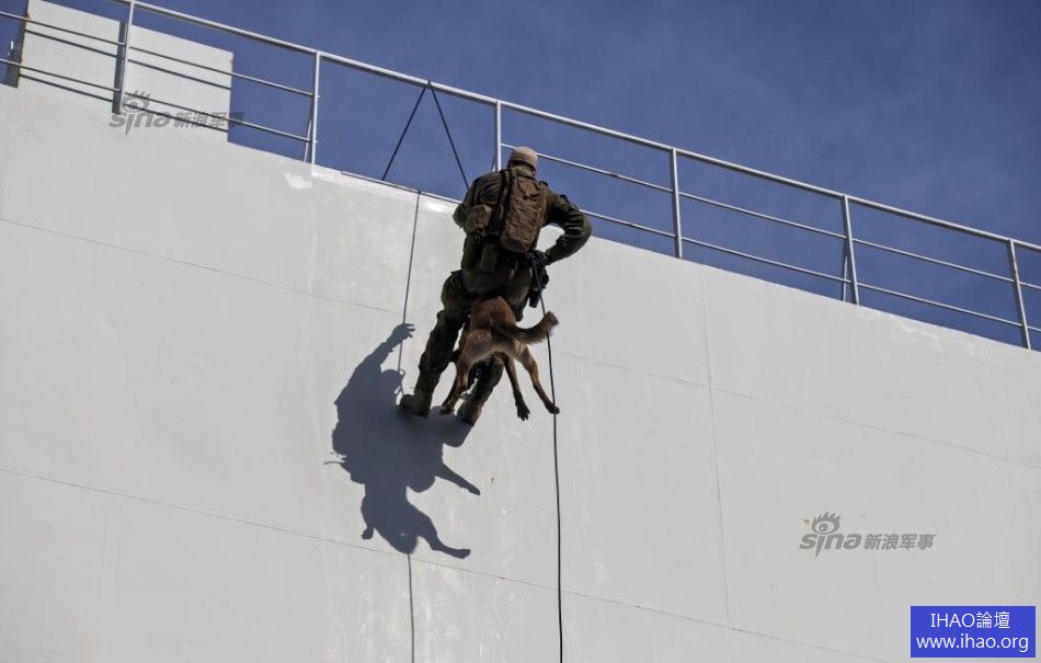 挪威特種兵攜帶軍犬進行繩降特戰課目演練
