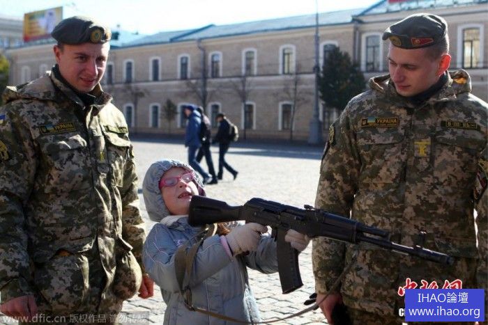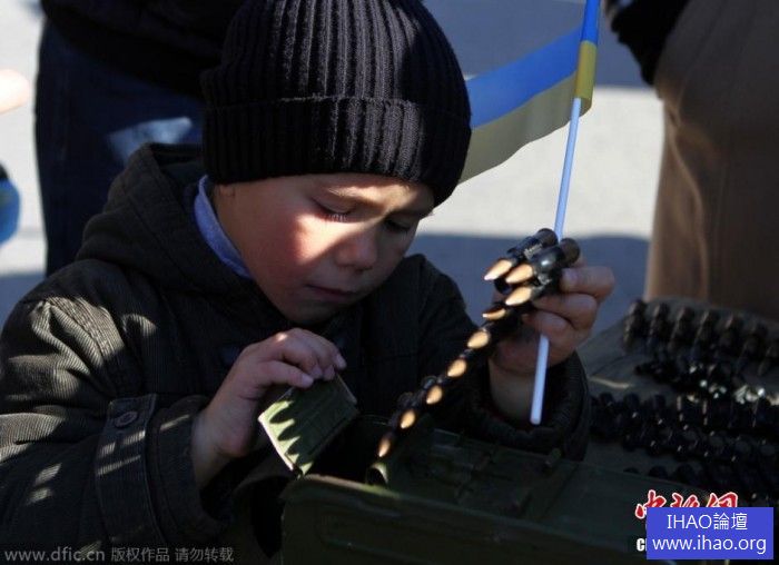 不過這些烏克蘭小朋友玩起武器真的很自然,