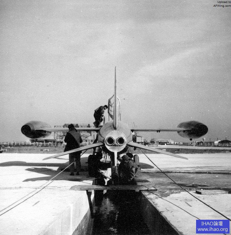 1954年7月4日,發動機在一個特製的平台上進行了地面試驗,發動機安裝有專用的管管以導出引擎產生的廢氣。試驗完成後,飛機進行了地面滑跑試驗。9月4日,古戎駕駛飛機進行了該機首次使用火箭動力的飛行試驗