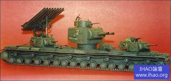 KV-VI 的模型,車體使用KV-1 的底盤延長而來,裝有6 個砲塔,火力十分強大。這種坦克留下的資料相當罕見,以至於研究者對於它是否真正存在過都一直爭論不休