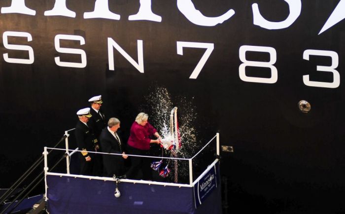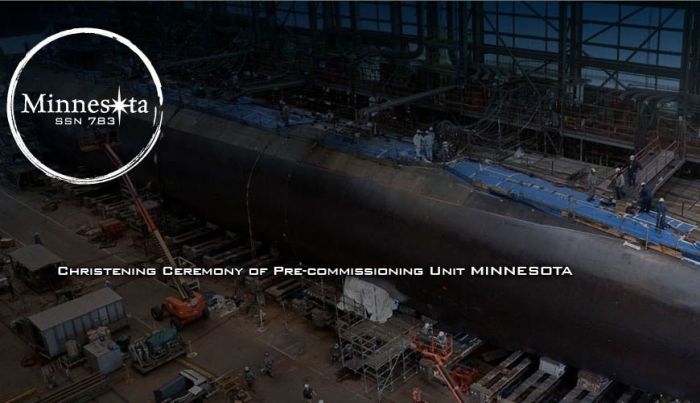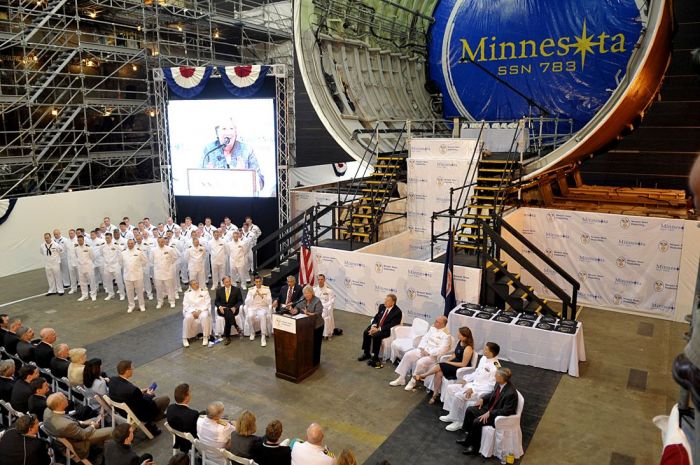 美國海軍網10月27日消息:維吉尼亞州的紐波特紐斯新港造船廠內,美國海軍與船廠聯合舉行第10艘「維吉尼亞」級攻擊潛艇「明尼蘇達」(SSN783)號新艇建成儀式。