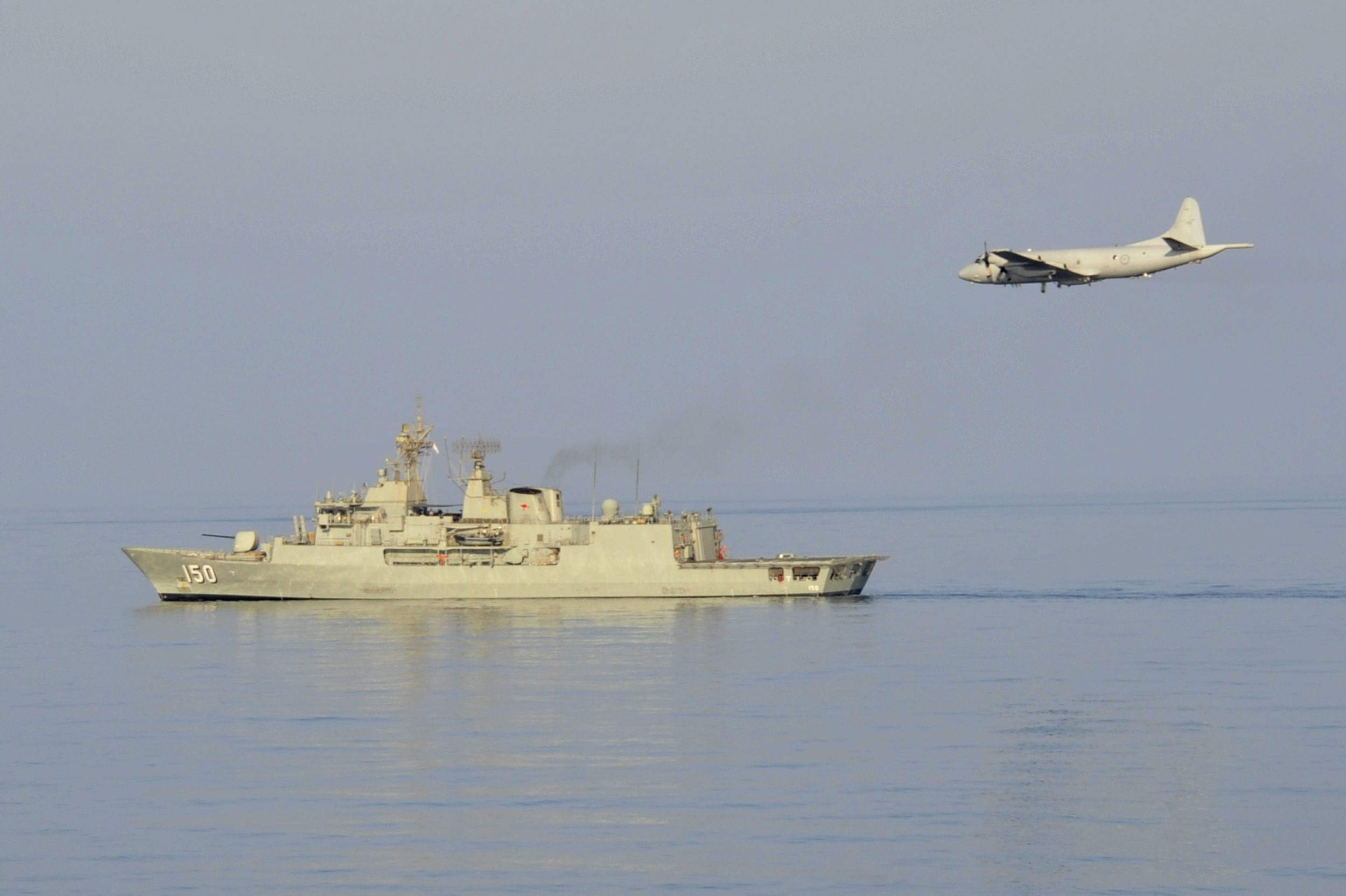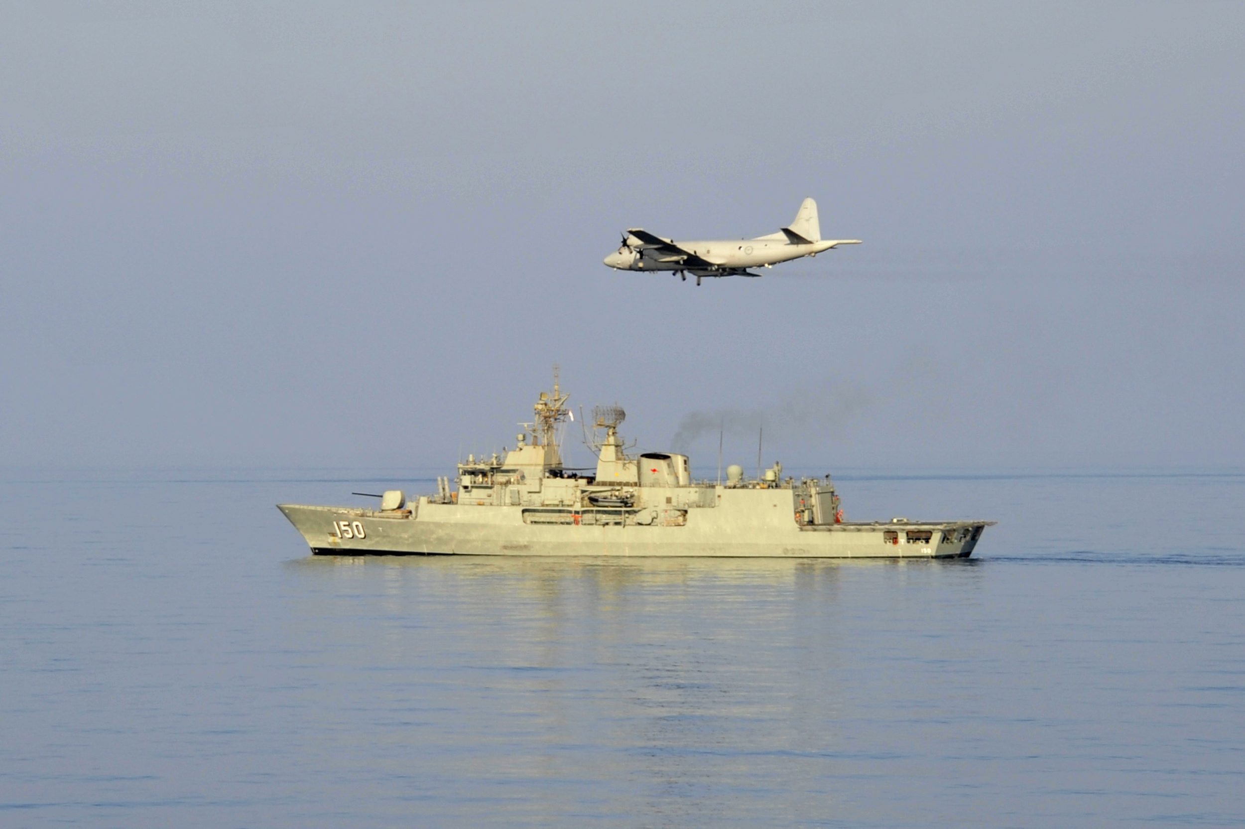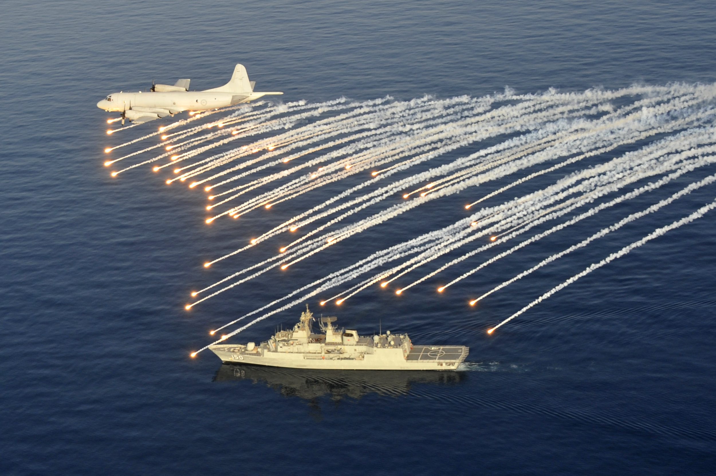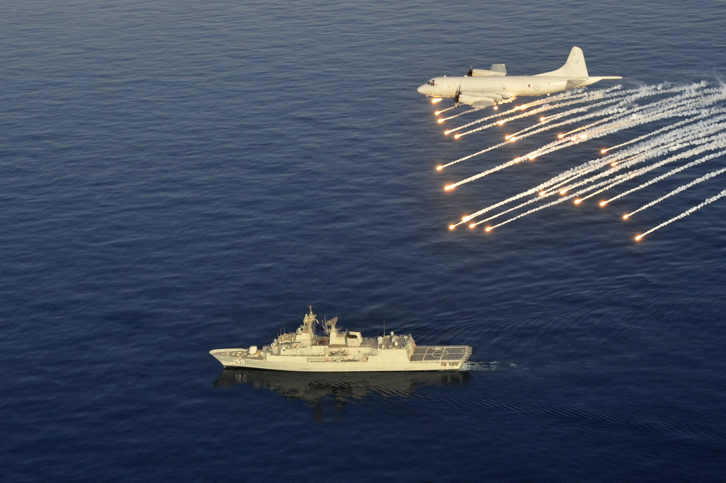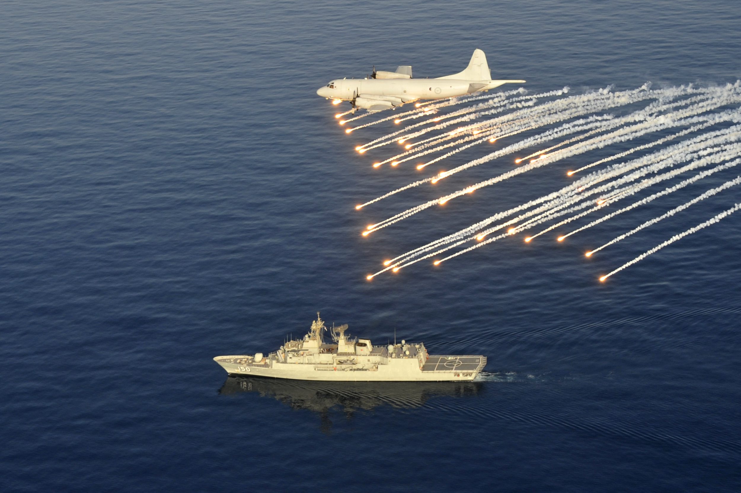 2012.11.29 一架AP-3C巡邏機向在航行中的紐澳軍團級巡防艦發射干擾彈表示告別……\