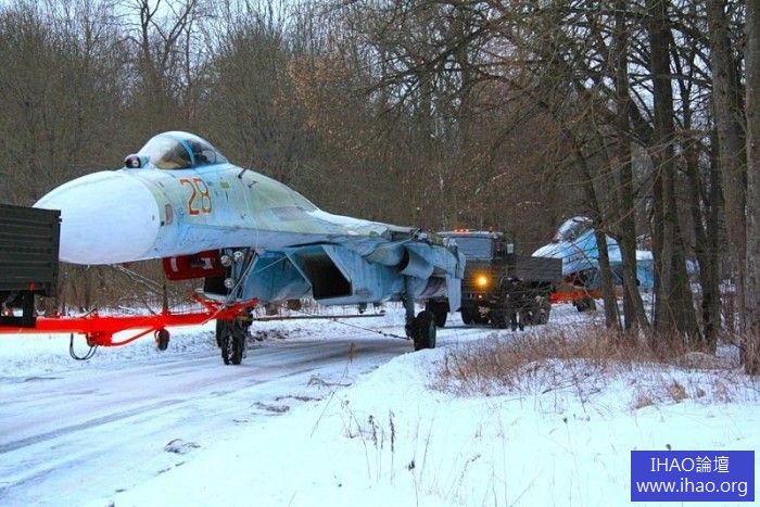 SU-27戰機被拆除機翼在公路用卡車拖行