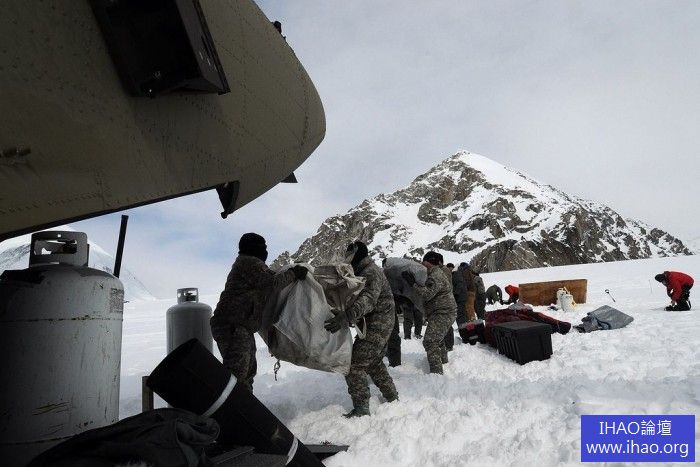 美軍阿拉斯加陸軍航空隊協助國家公園載運裝備設置基地營,準備作為今年夏季登山者之用