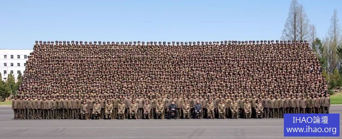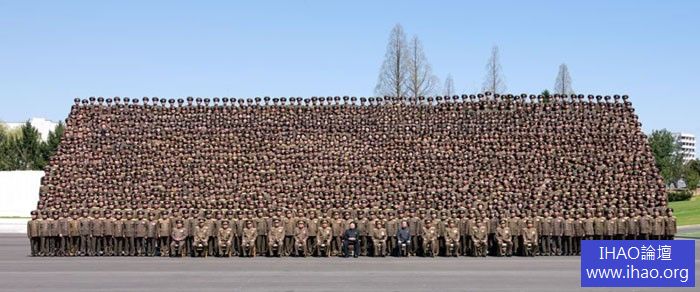 金正恩元帥同人民保安員和內務軍官兵合影留念。