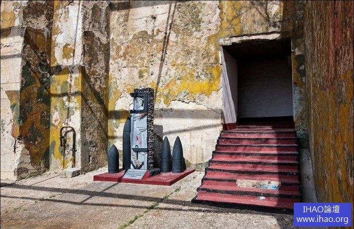 砲臺和地下掩體的入口,樓梯旁有守軍紀念碑。