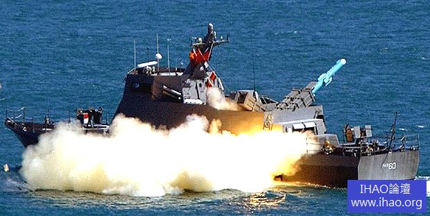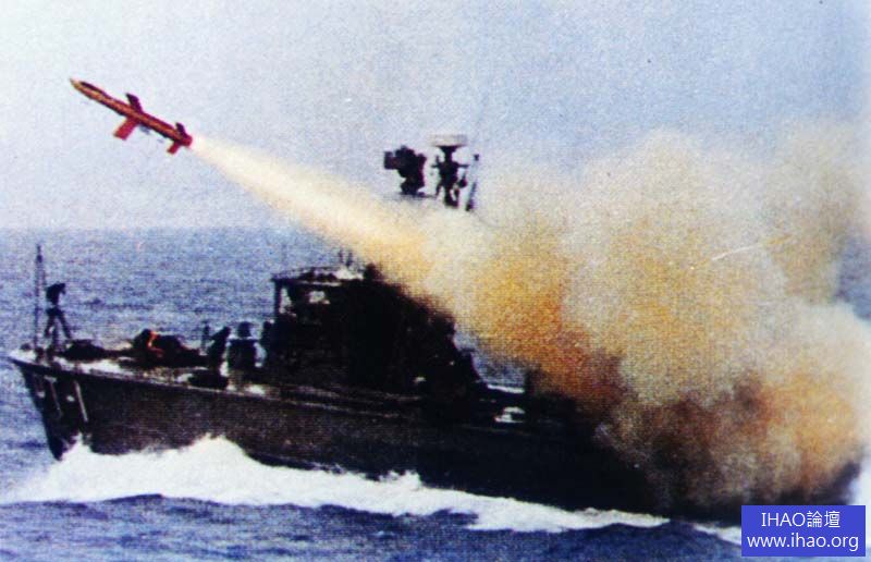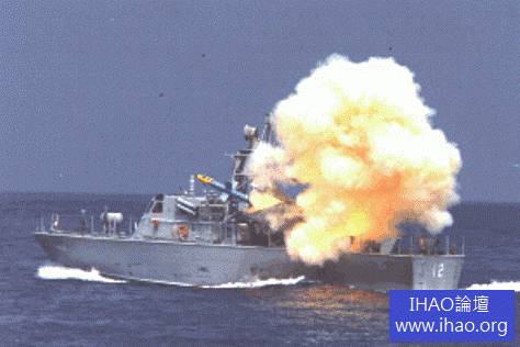 "海鷗"飛彈快艇發射"雄蜂"飛彈時之雄姿: