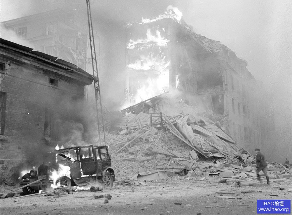 芬蘭國防部上月公佈二戰舊照。這些珍貴照片拍攝的年代是1939年到1945年。在這短短7年時間裡,芬蘭共經曆了三次戰役:冬季戰爭(反抗蘇聯軍隊入侵的戰爭);繼續戰爭(與德軍結盟打擊蘇軍)和拉普蘭戰爭(芬蘭和德國之間的對抗戰)。圖為1939年11月30日,蘇聯空軍轟炸赫爾辛基。這一天,蘇聯正式入侵芬蘭。