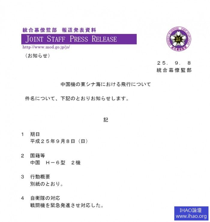 日本防衛省統合幕僚監部9月8日發佈消息,當天中國兩架轟-6轟炸機飛越日本沖繩和宮古島之間的宮古水道。日本航空自衛隊升空戰機緊急對應。這是近年來日本防衛省方面首次公開中國轟-6轟炸機抵近日本的消息。