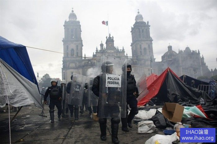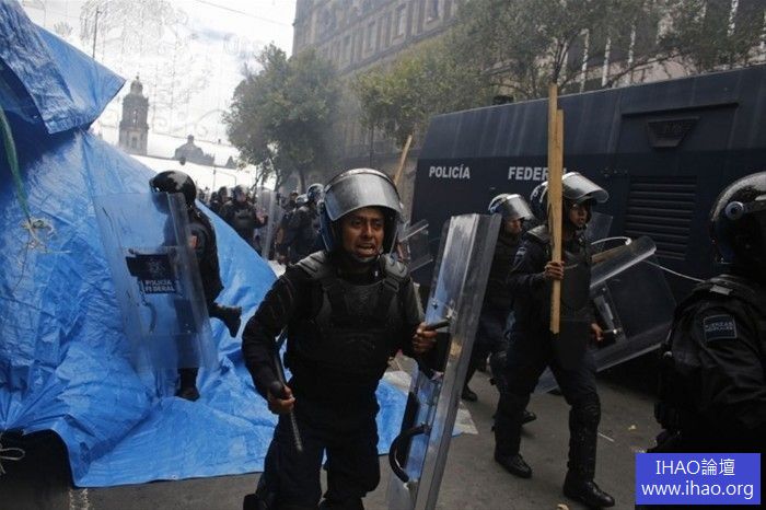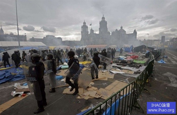 墨西哥政府認為教師工會的罷工實屬「無理取鬧」,立即調遣防暴警察實施清場行動。在直升機、裝甲車的掩護下,防暴警察衝擊廣場,釋放催淚瓦斯,痛打罷工教師,雙方共有數十人受傷,罷工教師鳥獸散 ........