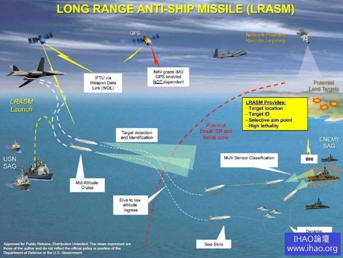 這種武器系統稱之為「遠程反艦飛彈」(LRASM),其研究由洛·馬公司、美國海軍研究局(ONR)和國防先進研究計劃局(DARPA)聯合開展。洛·馬公司飛彈與火控部LRASM項目經理麥克·弗萊明介紹說,該項目的目標是研發一種自主的、可在地面或者艦載系統發射的遠程飛彈系統,可用於精確攻擊水面艦船、潛艇和其它移動目標。