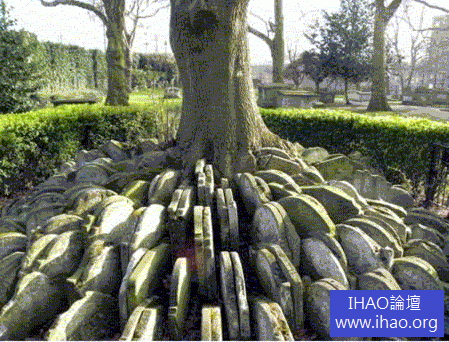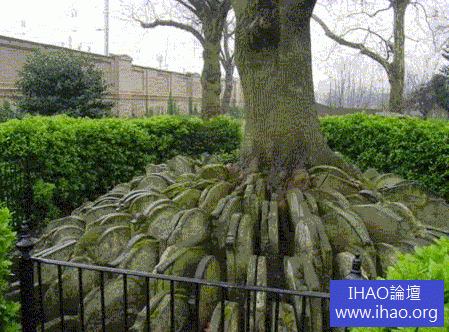 被墓碑積壓的參天大樹