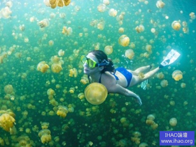 穿比基尼與水母同游,這可能是世界上最痛苦且危險的一種『消遣』。不過,據英國《每日郵報》報導,帛琉一名35歲的女導遊Mikki只穿比基尼,在10英尺深的水中與數千水母同游,向遊客展示了其實水母是很安全的一種生物。