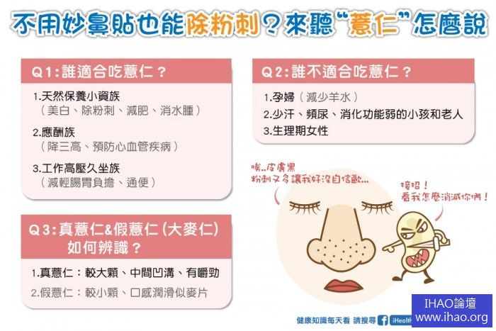 光這個好處便讓小編眼睛為之一亮了,面膜買了買,保溼乳液擦呀擦,每個月光是花在保養品上的摳摳便不知道飛走多少。薏仁含有維生素 B1 、鈣、磷、鐵、水溶性纖維、蛋白質、油脂等營養素,可以分解酵素,軟化皮膚角質,提高肌膚新陳代謝,強化皮膚抗菌功能,能保溼、防止老化,減少青春痘、痘疤、色素斑點、粉刺、雀斑、老人斑、皺紋。所以不只對年輕女性好,也讓媽媽們青春永駐呢!