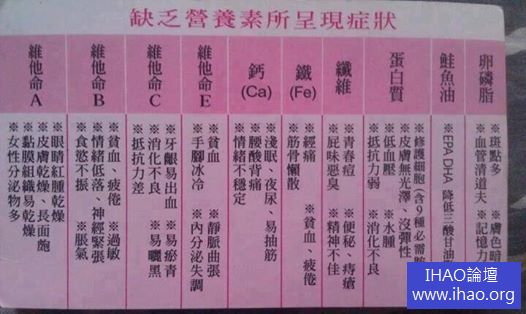 ~身體缺乏營養素所呈現的症狀~