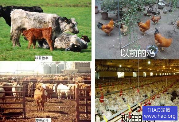 以前的雞,在院子裡互相追逐,嬉鬧,他們吃的是你撒給他們的小米,蘿卜櫻子白菜幫子活吧活吧的雞食。現在的雞奶呢,在隔絕自然光和新鮮空氣的金屬建築裡飼養,成千上萬只擠在一起。雞的嘴尖都被剪掉,每次吃飯的時候,他們都會痛,但又非吃不可。飼養過程使得雞成長的飛快,食用的都是添加了多種激素和抗生素的飼料,其壽命縮短到短短的45天(雞壽命7年)。這樣的雞和雞蛋,飽含了痛苦和否定的心理能量。人吃下去,長期下來,沒有心理疾病才怪。你對你的親人,家庭不好,虐待他們,你的結果,你的心情都不會好,這是99%以上的人的感受。