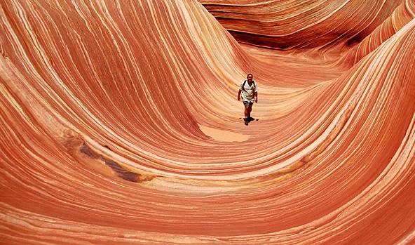 一、美國猶他州和亞利桑那州交界處的神秘「石浪」。位於猶他州和亞利桑那州交界處的神秘「石浪」是由1.9億年前的沙丘演變而成。在不到200平方米的山間縫隙中,血紅的砂岩如海浪翻騰,剛和柔的奇妙結合令人歎為觀止。順著砂岩的紋路觸摸著精緻的波浪痕跡,彷彿還可以感受到億萬年前沙暴的精心設計和雕刻。