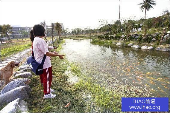 巴轆公園生態池映著夕陽,成千的錦鯉在水底閃閃發亮,九如國中學生卓薰雅說,她以前最喜歡和家人一起到耆老村的水溝餵鯉魚,現在九如多了一個賞魚的地方,一放學她就會和同學一起到巴轆公園,開心地玩「拍拍魚」。