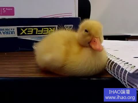 由荷蘭藝術家霍夫曼所設計的黃色巨鴨,征服全世界許多城市,讓大家重拾童年般的單純回憶,而現在網路上這隻黃色小鴨人氣也一樣非常夯,只見牠乖乖地坐在桌子上,眼皮好像被催眠越來越沉重雖然牠不斷掙扎,但整個身子還是不聽使喚,一直往前倒下去,無法自拔地打瞌睡,最後牠搖頭又晃腦,好像夢周公的學生一樣,要把自己給搖醒,被網友大讚真是太可愛了。