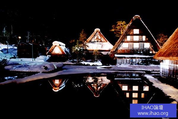 每年白川鄉的合掌聚落最美的季節,應該是冬季的點燈與夏季的灑水。因為是使用稻草堆壘的屋頂,所以到了春末夏初都會辦一場消防演習,全村的消防栓與好幾輛的消防車,朝著合掌屋的屋頂噴射20米高的水柱,這些水柱在天空形成了一道道圓弧形的拱門,煞是好看。到了冬天,屋頂上則是堆積了厚厚一層的白雪,猶如瑞士的小城一般。每年的一月、二月,白川鄉會舉辦幾場點燈秀,不論從山上往村子鳥瞰,或是站在合掌屋前,看著到映在水面上的景象,總算能夠明白,為什麼在1933年那一群田園調查的學者們,為什麼會那麼感動的說出「這是合掌向上天祈求來的寧靜與和平」
