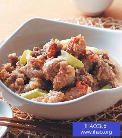 1.排骨剁小塊,以流動的冷水沖洗去血水後撈起,瀝乾水份備用。