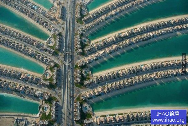 ▼棕櫚群島,外形像棕櫚的杜拜第二大人工群島。建在島上的建築物都是高級公寓。