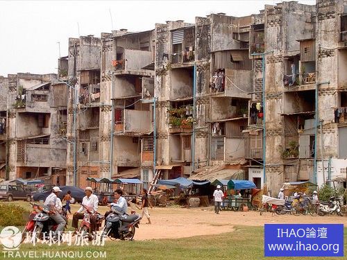 柬埔寨巴塞公寓。上世紀六十年代由Lu Ban Hap設計的創新公寓大樓,曾是柬埔寨的一顆建築珠寶。上世紀六十年代,城市規劃主任倡議提出低成本社會住房專案,建造了300公尺長的巴塞公寓。然而,自1979年以來,由於房屋開始腐朽,法定住戶搬出公寓,這個政府資助的住房專案已經成為2500名難民的家。如今,這座混凝土和磚結構建築的鋼筋混凝土牆之間已經形成危險的裂縫,向內生長著寄生植物。這座大樓隨時有可能坍塌,活埋2500名居民。