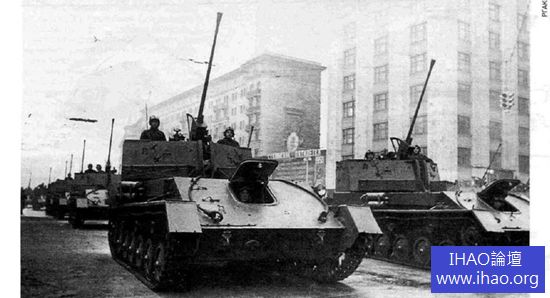 二戰時期蘇聯紅軍雖然擁有龐大的坦克部隊,但其合成化卻很不完整,譬如很少裝備裝甲車,伴隨坦克的步兵的典型標誌是一群人肉坐在T-34 坦克上面。自行高炮就更加罕見,僅在戰時利用T-34 坦克車體設計過幾種簡單的37 毫米自行高炮,以及利用老式坦克裝甲車改裝的雙聯14.5 毫米自行高射機槍,直到戰爭結束都沒有裝備部隊。一般而言,自行高炮在蘇聯衛國戰爭的軍事裝備歷史上是個空白。