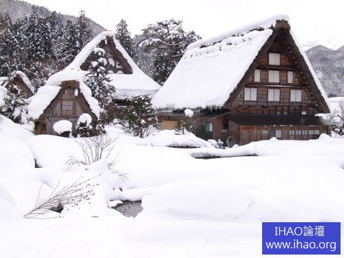 合掌村的民居就是這麼夢幻,茅草在冬天被厚厚的雪覆蓋。