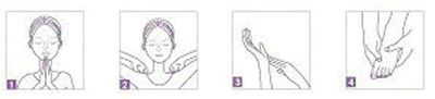 沐浴後取5元硬幣大小的舒眠霜於指腹間,以緩慢而深長的呼吸(圖1),讓嗅覺吸收感覺平靜和諧的香氛,再呼出累積於身心的雜念與壓力。接著以畫圓的方式,將舒眠霜按摩於頭後方與頸部連接凹處的「風府穴」,再移至肩膀中段下一點的「曲垣穴」(圖2)。接著,移至手掌與手腕交界褶縫處,靠近小指的神門穴,持續畫圓按摩(圖3),最後再以畫小圈的方式按摩腳底,直到舒眠霜完整被吸收 (圖4),當按摩結束時睡意也將同步啟動。