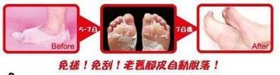 超強視覺系足部去角質商品!免搓!免刮!使用方便,像敷面膜一樣簡單!使用後約5-7日,腳上的老廢角質會逐漸脫落。1星期後,更能讓您雙足恢復如嬰兒般光滑柔嫩肌膚。