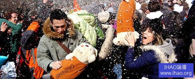 要是你覺得平常在家裡打枕頭戰 太不過癮, 那就來參加這個一年一度的 紐約枕頭大戰!