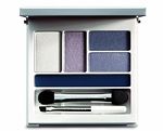 重點眼妝的部份,運用紫色、藍色、金色等繽紛色彩,綻放早春印象,先以蘋果光亮眼筆打底,同時選用「開心棉花 限量眼彩盤」中的紫色及深灰紫色,煙燻、堆疊於上眼皮眼褶處;再以珠光靛藍色煙燻上下眼尾、並描繪下眼線,創造眼部深邃立體感;接著用珠光白打亮眼頭、靛藍眼線膏加深於眼尾,細緻雕著讓眼妝更形搶眼,最後再搭配「專業單色眼影#25金色沙丘」打亮眉骨處,增強五官立體感;最後以z字型刷上濃飛俏愛現假睫毛膏,打造360度迷人眼妝,並用專業眉筆修飾眉形。