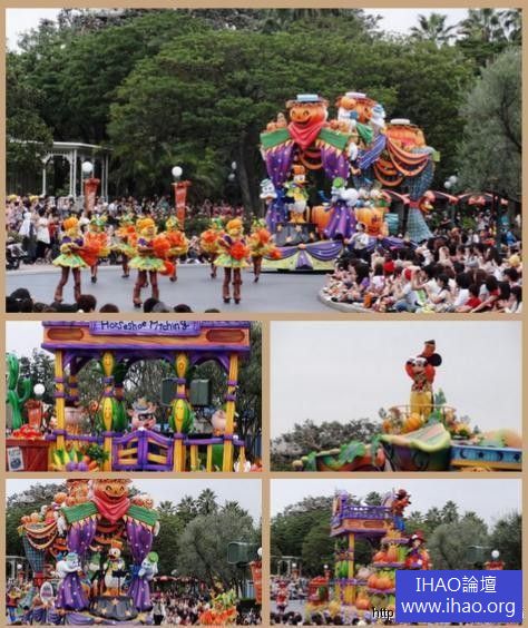 萬聖節限定遊行「歡樂萬聖慶豐收」,共有7台造型可愛、充滿萬聖味的花車,所有迪士尼明星通通換上精心打扮的萬聖節妝扮,米奇、米妮換上南瓜般的橘色調華麗衣服,維尼家族裡的屹耳則是在背上裝了蝙蝠翅膀、跳跳虎更是把床單直接穿上身,小熊維尼與小豬則是帶上應景的可愛頭飾,唐老鴨頭戴可愛南瓜帽,女朋友黛西則是換了女巫的妝扮,奇奇蒂蒂、高飛狗都在萬聖南瓜、幽靈花車的帶領下登場,迪士尼明星輕快的舞步,搭配萬聖節音樂,讓所有遊客們不禁跟著一起高喊「trick or treat」,一同享受萬聖節的歡樂時刻!