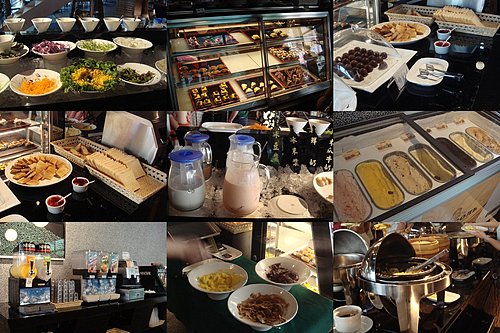 提供的餐點除了肉類或海鮮類的東西沒有外,其他的幾乎都一應俱全,沙拉吧.麵包吧.蛋糕櫃.冰淇淋櫃.港式點心類.中式熱炒類.新鮮果汁吧.飲料吧.水果吧,幾乎都有了,而且直得稱讚的是,補菜速度超快呢!