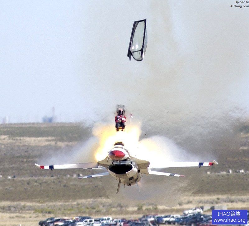 出於經濟因素的考慮和環保形象,“雷鳥”在1974年換裝了更為省油的T-38A“禽爪”,繼續飛了7年。1982年1月18日發生了“雷鳥”歷史上最嚴重的事故:4架T-38以菱形編隊撞向沙漠,無人倖存。T-38是“雷鳥”使用過的唯一的教練機,1983年換裝F-16A Block15“戰隼”戰鬥機,1992年換成了F-16C Block32,2009年表演季又換裝了F- 16C Block52,該機安裝有強勁的普惠F100-PW-229發動機。