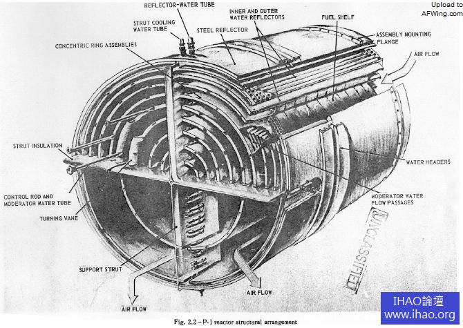 在《SEA 雜誌》的一篇文章中,L·W·Credit 寫到:“通過特殊部件和冗餘設計來實現核動力飛機可靠飛行的三種設計中,單反應堆全核能的飛機似乎是最佳的。” 另外兩種設計分別是雙反應堆系統和核能-化學能混合系統。ANP 項目最初是研製一種直循環的單反應堆推進系統。但是GE公司向政府請願要求開發這個直循環系統,GE表示直循環較簡單和縮短開發週期。在間接循環方面,普惠研製的是超臨界清水反應堆,作為工作介質的水可被加熱到1,500 度,但是在34.474 兆帕的高壓下仍維持液態。這就避免了使用液態金屬作為介質,美國從不主張使用液態金屬,迄今在現役軍用反應堆中,除了“海狼”級攻擊核潛艇的液態鈉反應堆外,都是壓水反應堆(PWR)。甚至“海狼”在服役幾年後由於液態鈉反應堆問題不斷而最終改用PWR 反應堆。