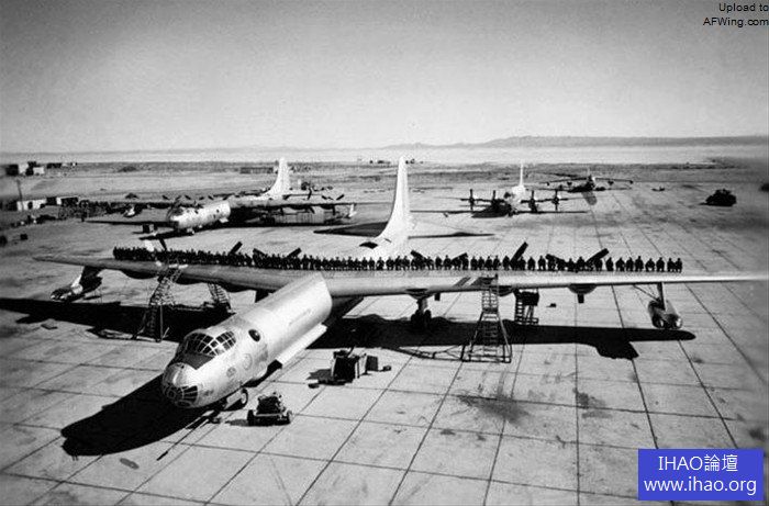 巨大的B-36,空勤人員在機背上擺POSE