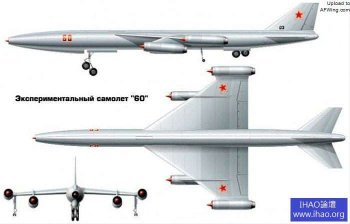 局內代號為M-60 的設計第一稿早在1956 年7 月即全部完成。與此同時,與之合作的AM 留里卡設計局的新發動機的設計也即將完成。這種核/渦噴發動機所需熱量由經過核反應堆從而被加熱的空氣提供。強大的“心”足以給M-60 的49,600 磅推力。按照設計要求,飛機起降過程均使用常規動力。